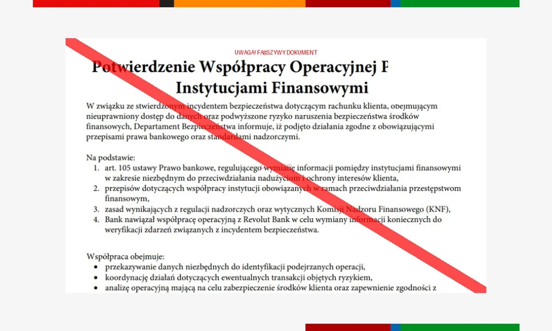 wysyłają sfałszowane dokumenty, na potwierdzenie swoich działań, z instrukcji, jak przekazać pieniądze na „bezpieczne konto”.