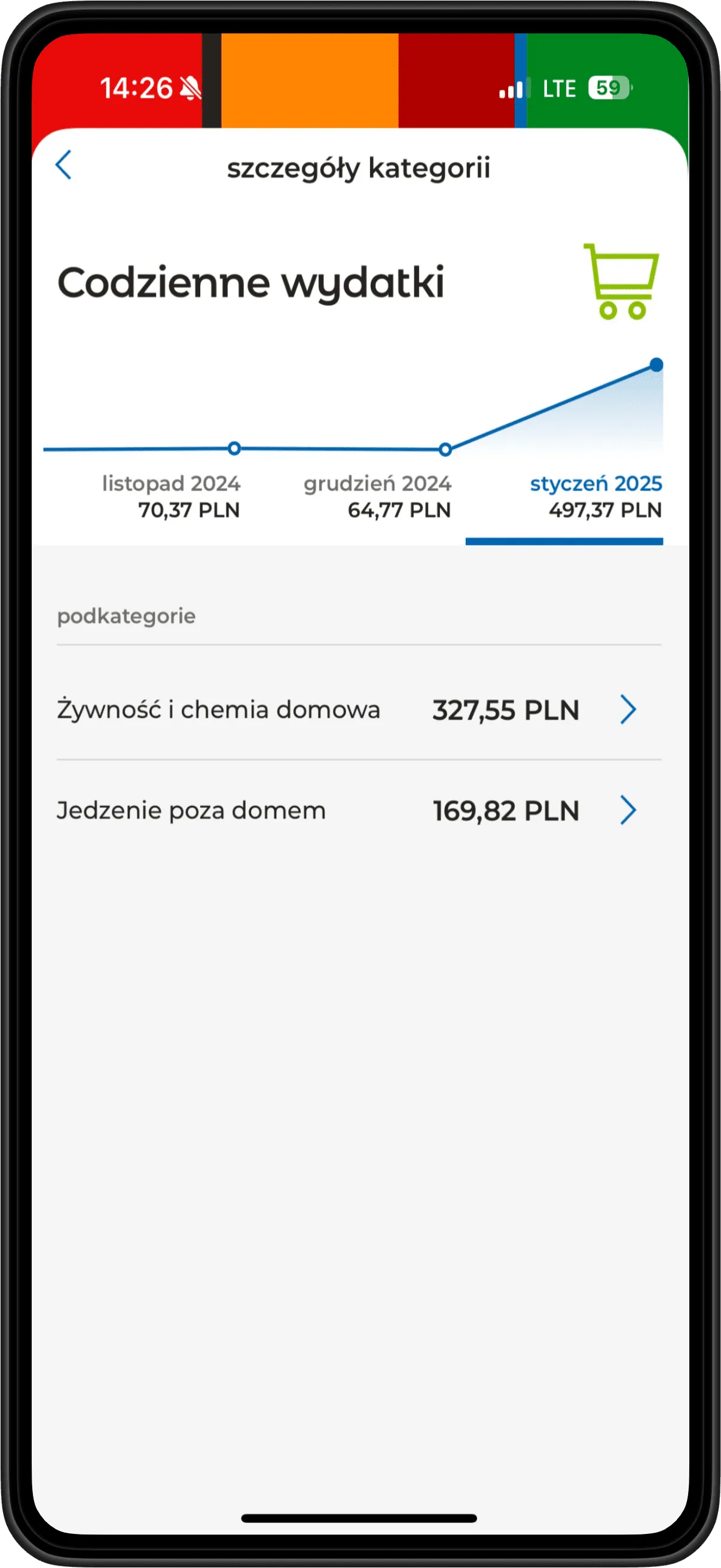 Dokładnie widzisz na co wydajesz najwięcej – możesz potwierdzić słuszność swoich finansowych decyzji lub zainspirować się do zmiany nawyków.