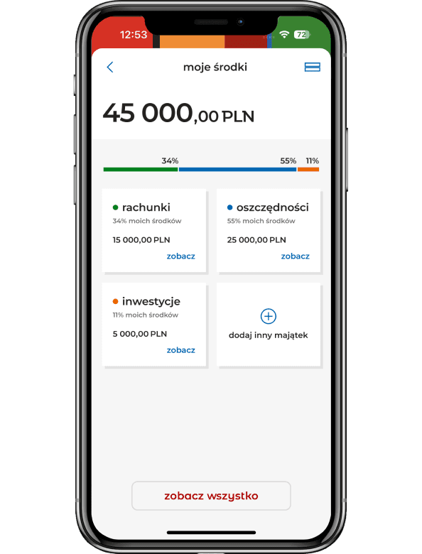 W aplikacji mobilnej w zakładce finanse znajdziesz: